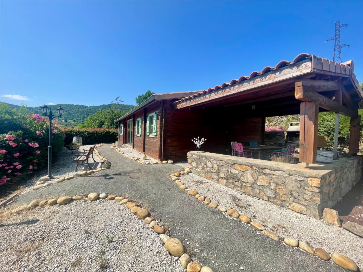 EMPURANY (07270) – Chalet en bois massif de plain-pied avec vue dégagée