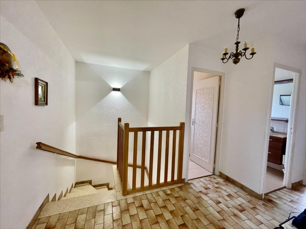 Au rez-de-chaussée, vous trouverez deux chambres, une buanderie, une salle d’eau avec toilettes ainsi qu’un grand garage de 37 m² offrant un bel espace de rangement.