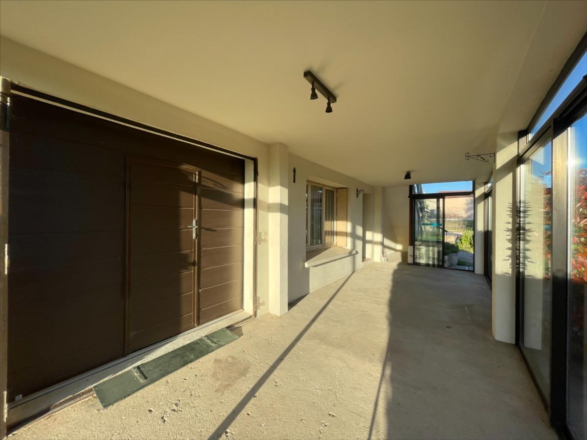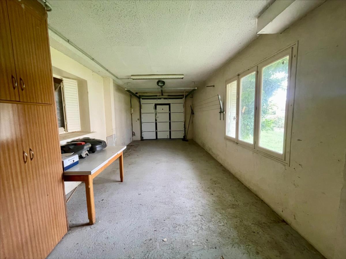 La maison dispose également d’un garage avec portail automatique, d’une cave et d’un appentis offrant des espaces de rangement supplémentaires.